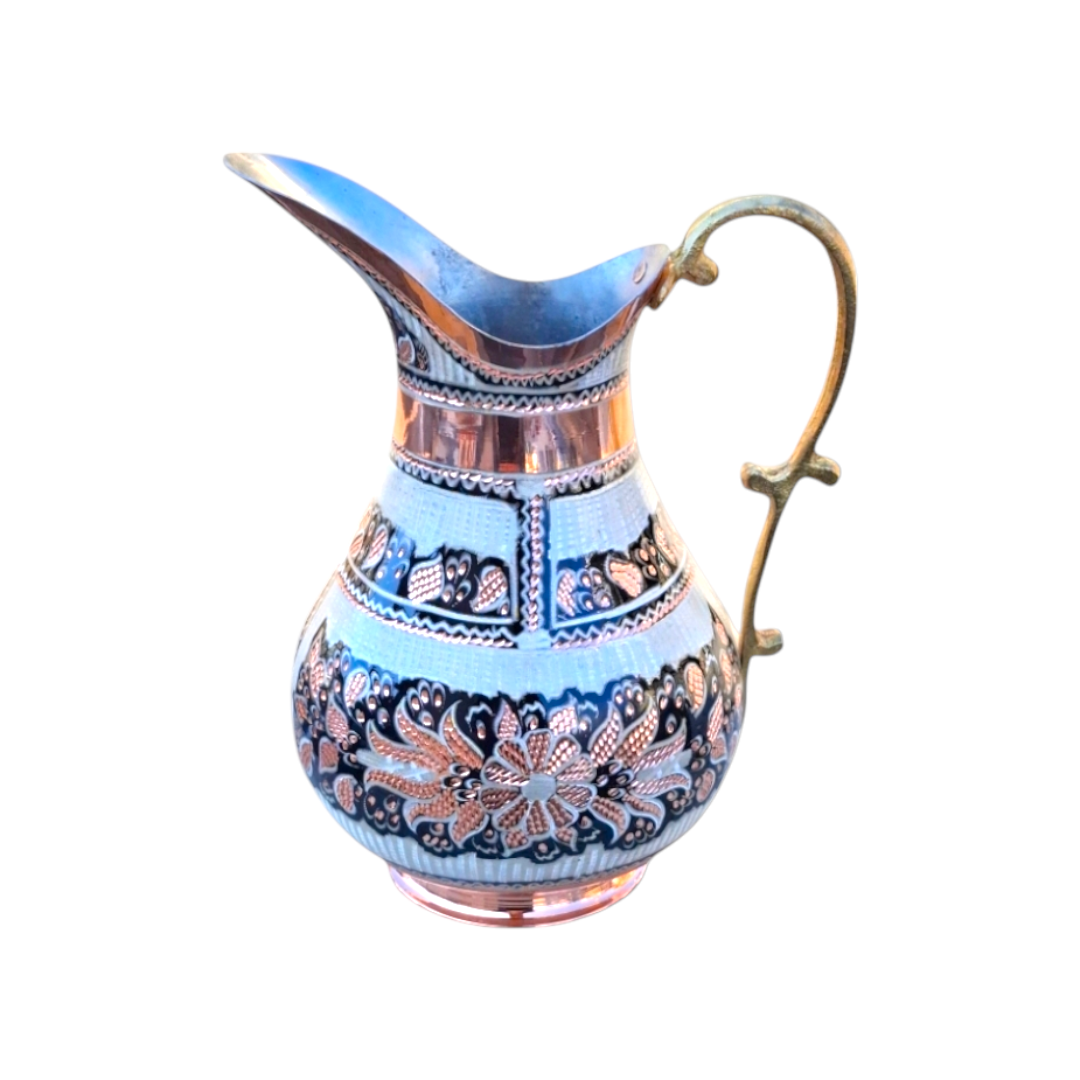 ست کامل شربتخوری با تزئینات نقرهکوبی دستساز، مناسب برای پذیراییهای رسمی و مراسم ویژه. طراحی باشکوهی که اصالت صنایع دستی ایران را به رخ میکشد.