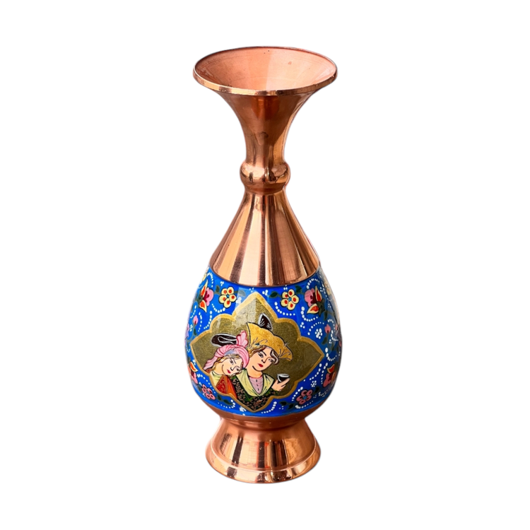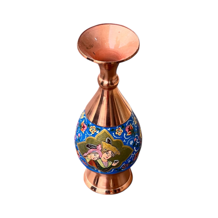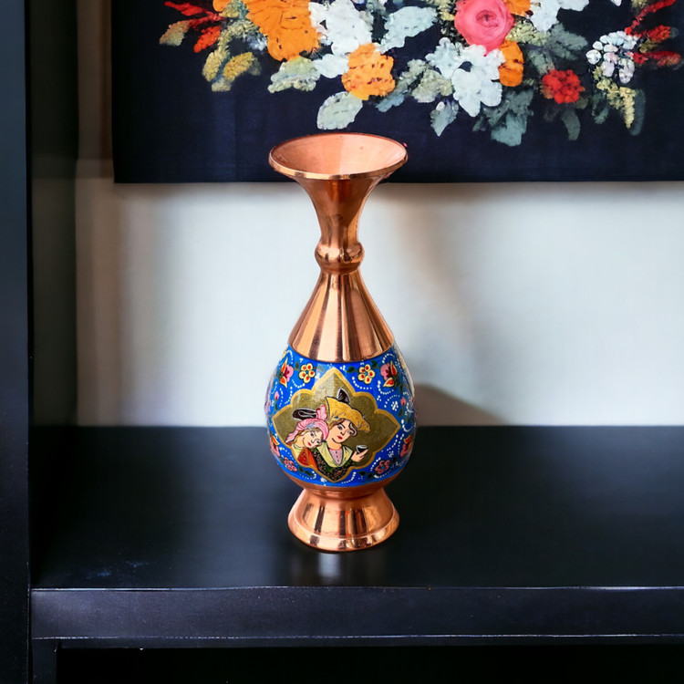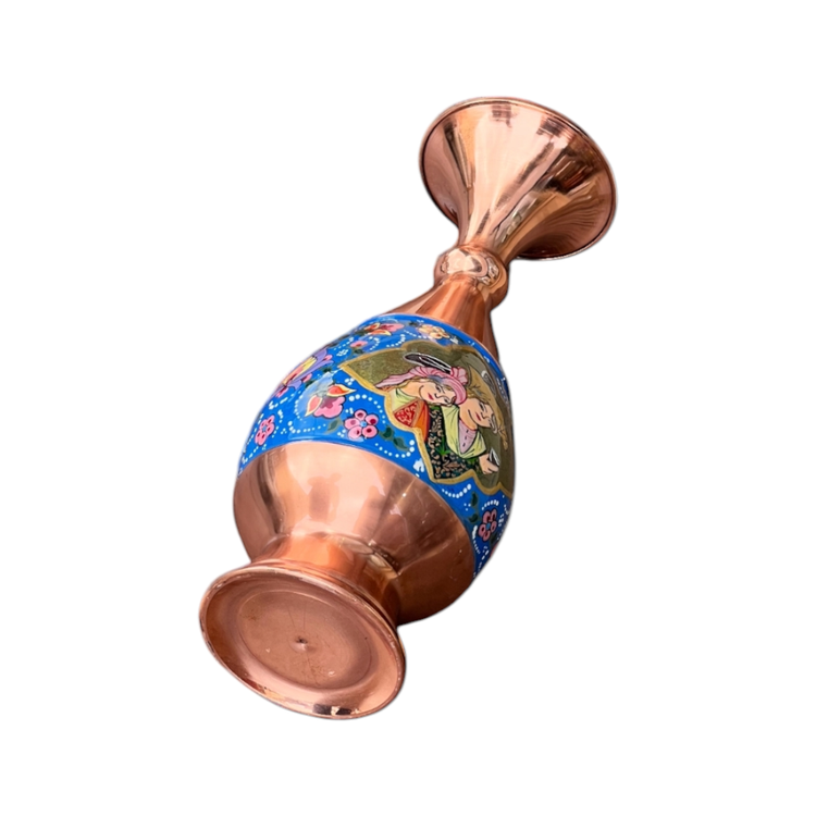 گلدانی ظریف با نقوش میناکاری اصیل، ساختهشده برای فضاسازی مجلل و دکوراسیونهای رسمی. هر گل و برگ این اثر، روایتی از هنر ناب زنجان را روایت میکند.