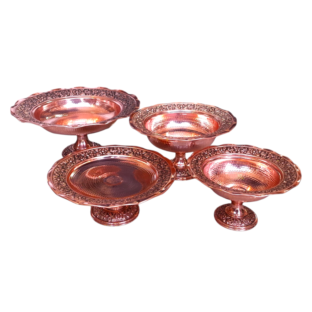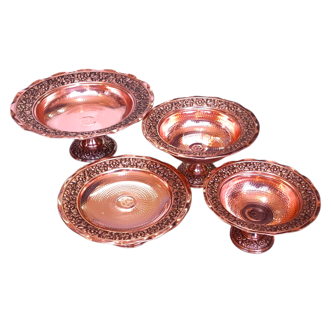 مجموعهای نفیس از ظروف مسی با طرح گلهای ریز و ظریف در حاشیه، ساختهشده به روش چکشکاری سنتی. این ست که با هنرمندی استادکاران زنجانی خلق شده، زیبایی اصیل ایرانی را به میزهای رسمی میآورد.