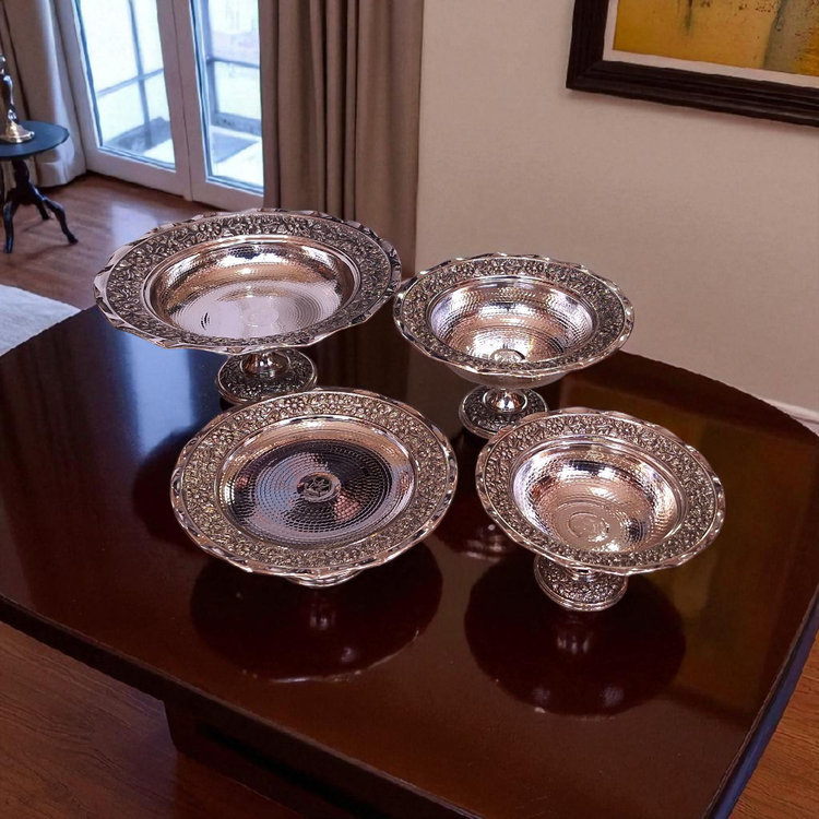 مجموعهای نفیس از ظروف مسی با طرح گلهای ریز و ظریف در حاشیه و روکش کروم براق، ساختهشده به روش چکشکاری سنتی. این ست که با هنرمندی استادکاران زنجانی خلق شده، زیبایی اصیل ایرانی را به میزهای شما میآورد.