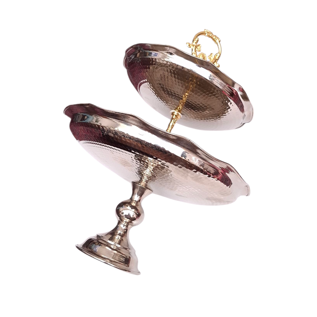 شیرینی خوری دو طبقه مسی با روکش کروم